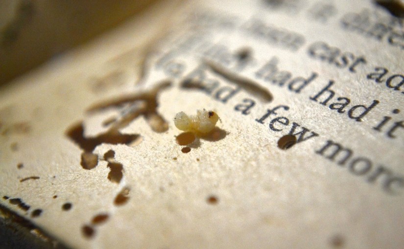 Devouring tomes one pinch at a time.